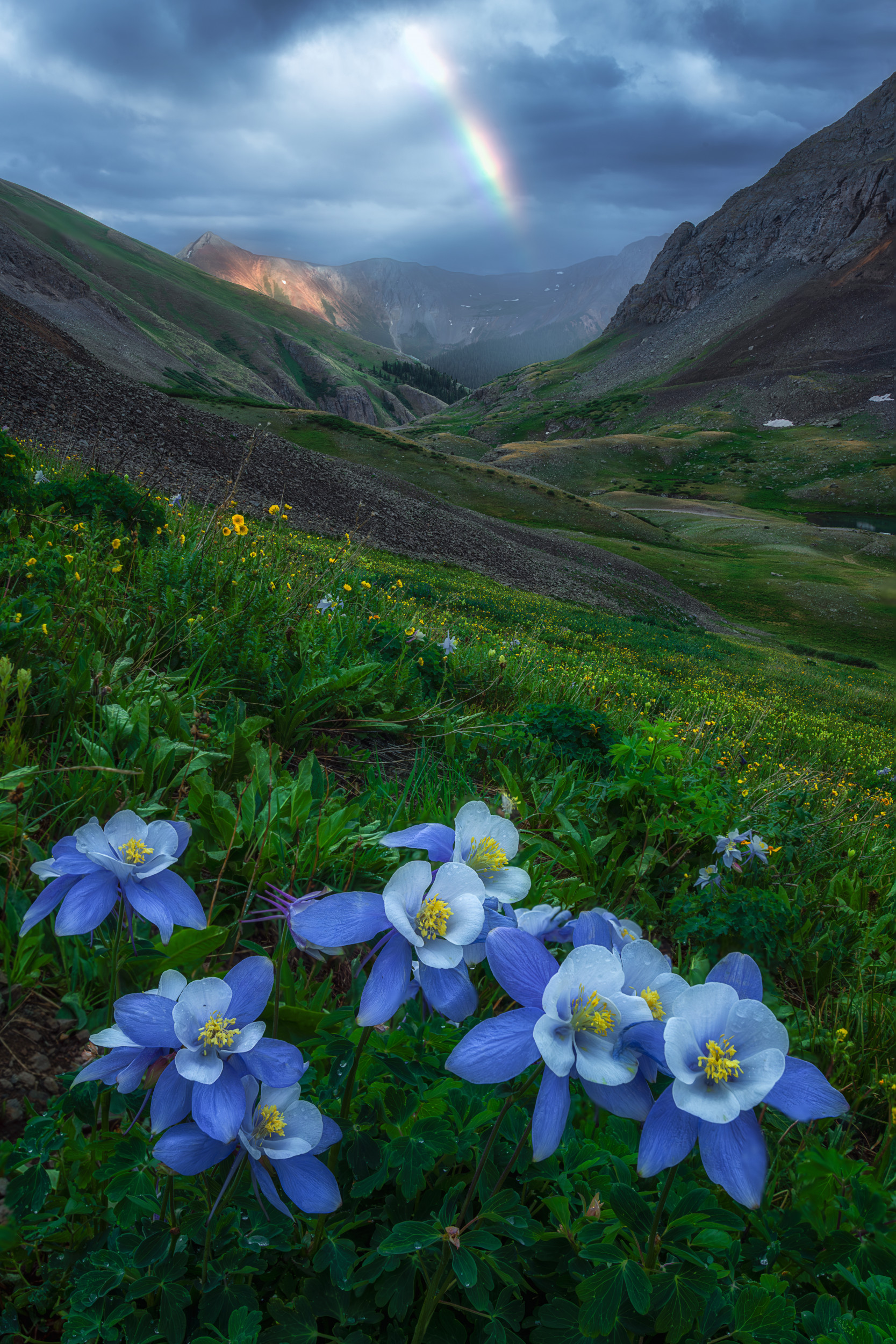 ‘Rainbow over Blue Columbine in Colorado Valley’ by Mei Xu