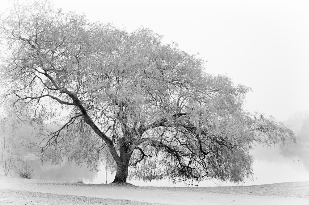 I personally do like this tree, sadly, it was years ago... it doesn't look right now to me, like it is.  But I wanted to capture this eerie like feeling, the mist, the solitude and this tree standing at the lake on a foggy day.